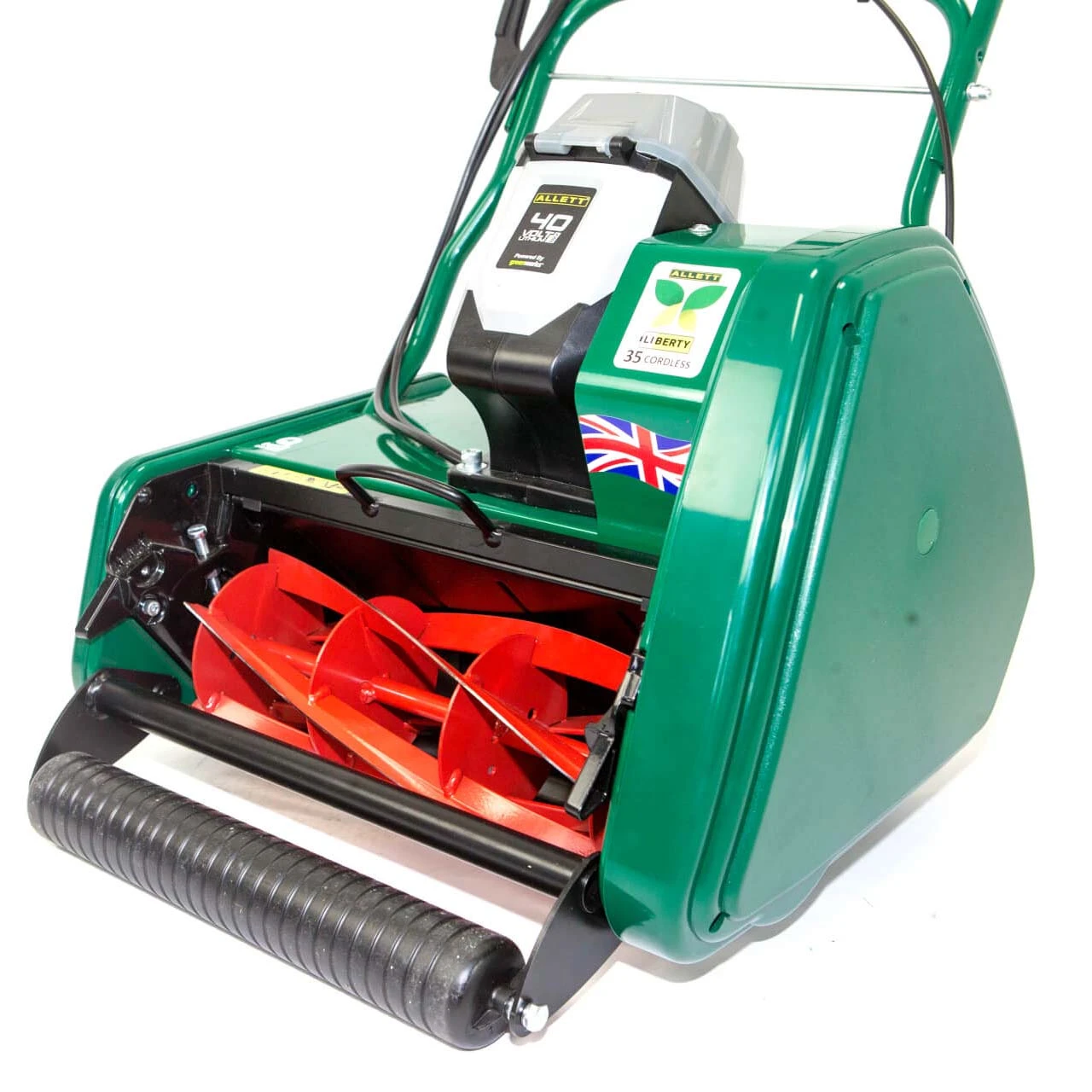 Being a cylinder mower, the Allett Liberty 35 will give a precision cut to your lawn. Powered by a 40 volt 4Ah lithium-ion battery, the Liberty 35 has the power and freedom of movement of a petrol mower whilst at the same time giving the cleanliness, convenience and quiet operation of an electric mower.