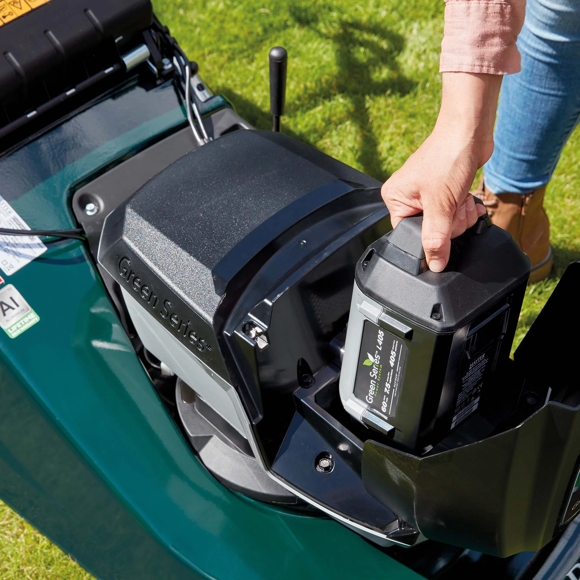 Variable Speed Drive – The Hayter Harrier 41 Cordless mower is self-propelled and the forward walking pace can be altered to suit the operator and cutting conditions.