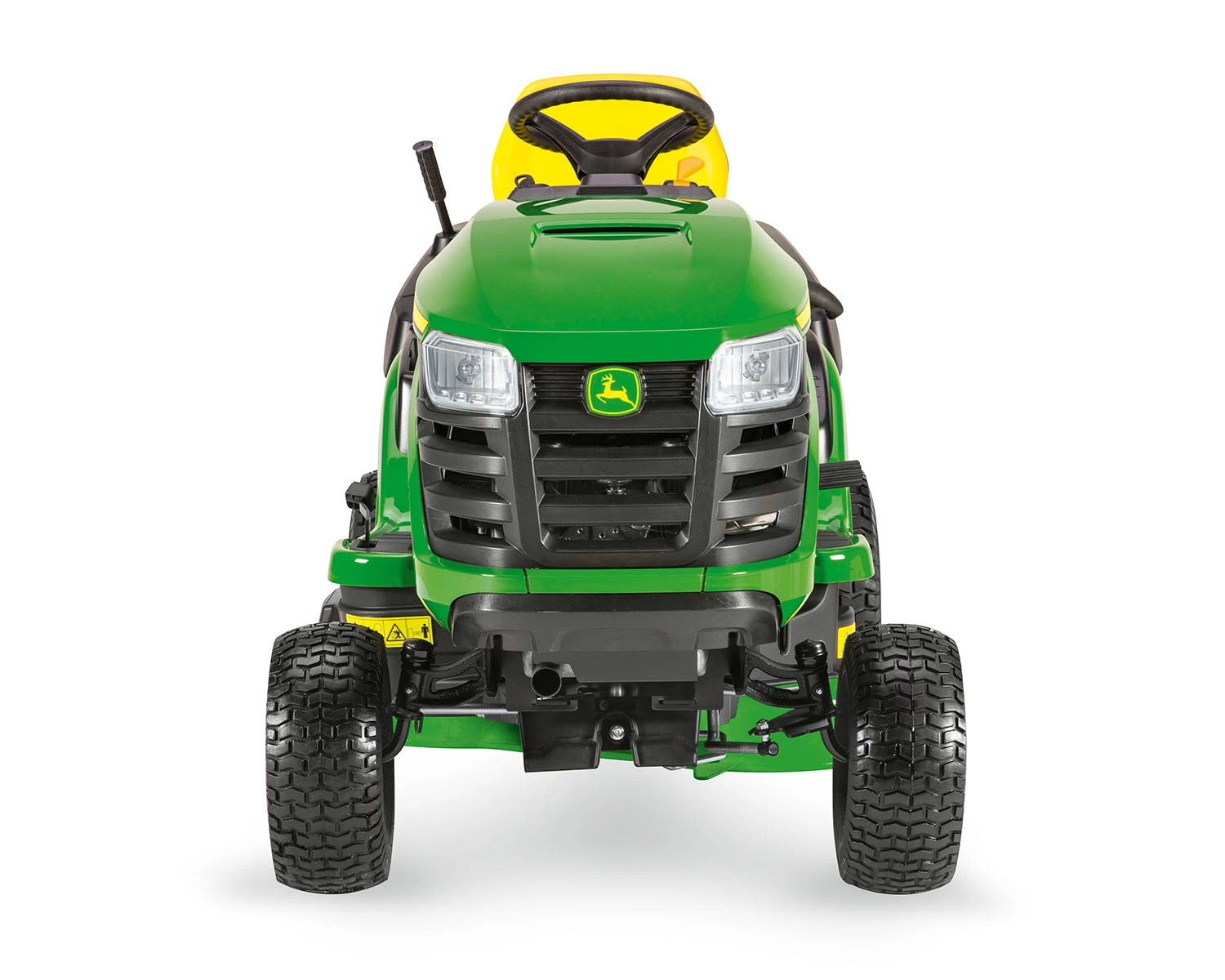 The John Deere X147R lawn tractor is powered by a Briggs & Stratton V-twin engine and features a 36â (92cm) âdirect collectâ grass cutting and collection system to ensure that the grass clippings are effortlessly cut and discharged into the generous 300 litre grass collector.