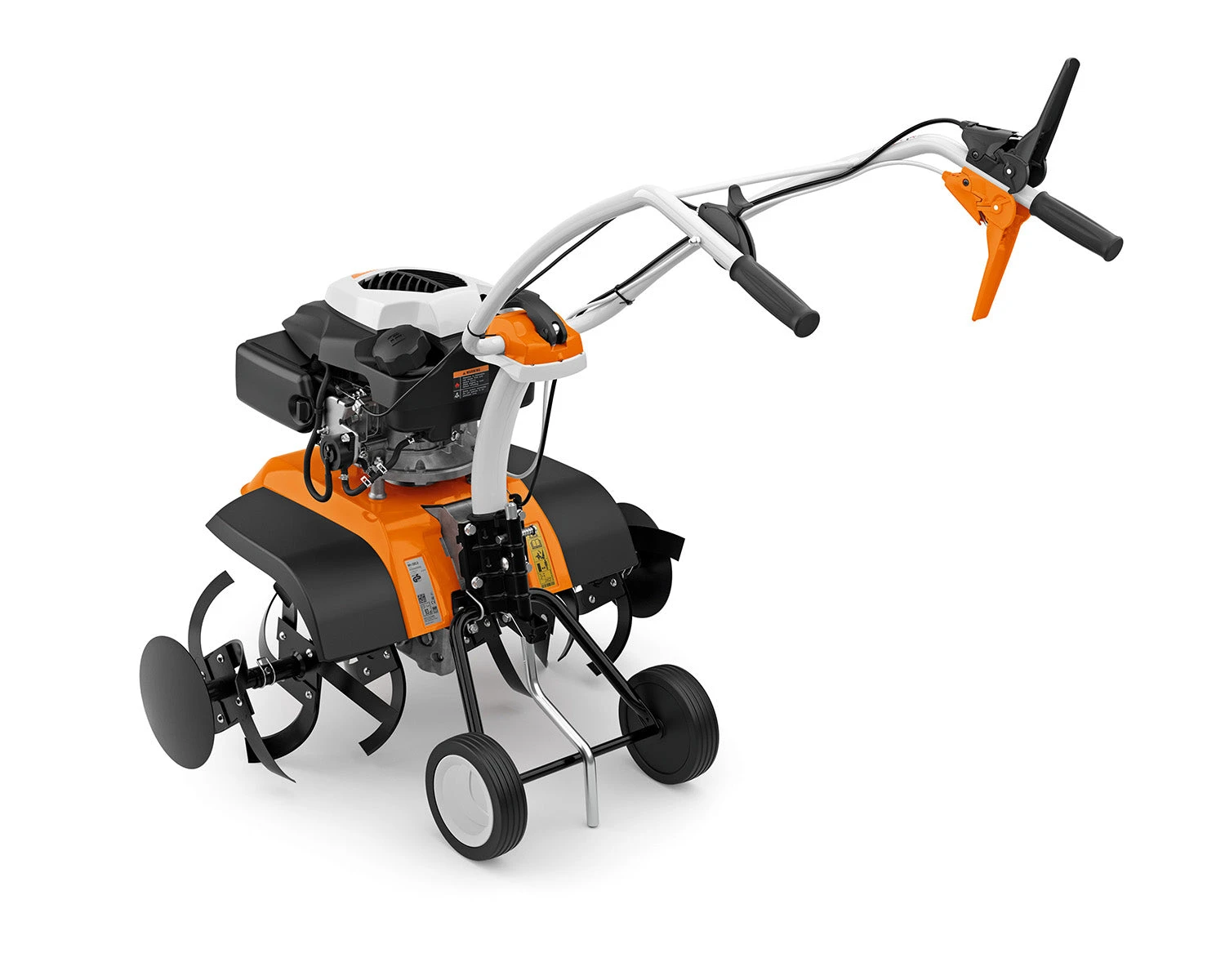 The Stihl MH585 is a high performance tiller for working in larger allotments and gardens. The MH585 has a single speed forward drive and a single speed reverse drive.