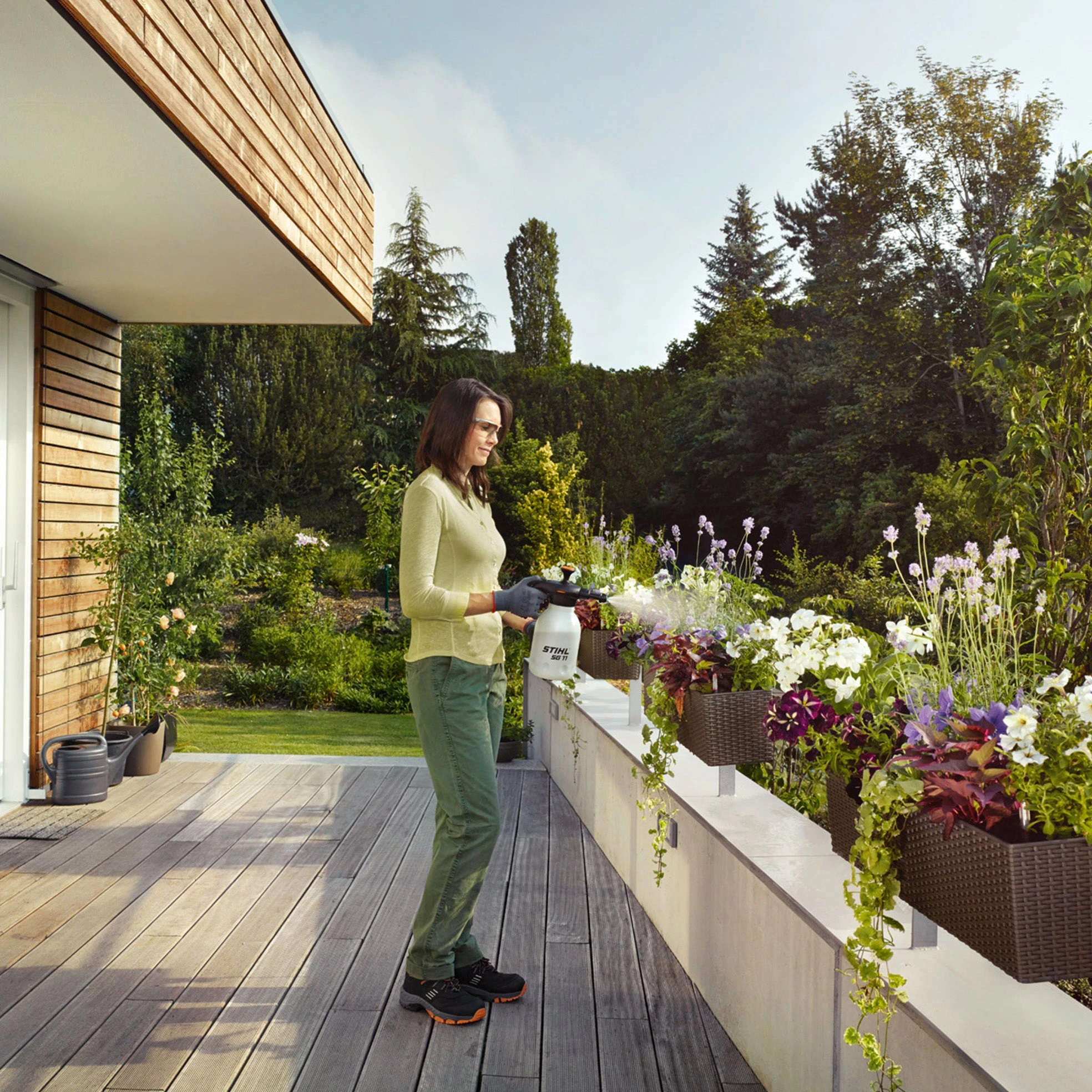 Handheld sprayer with 1.5L volume for distributing pesticides.