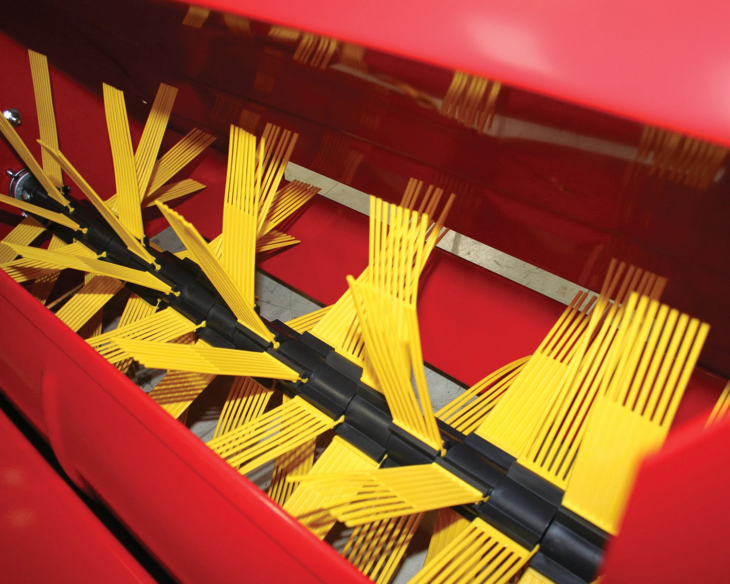 Power is provided by a belt drive from the tractor and because the collector does not rely on a flow of air to collect the grass, collection performance is excellent even in wet conditions when air-blown collection systems might block. The grass collector is switched on and off at the push of a button.