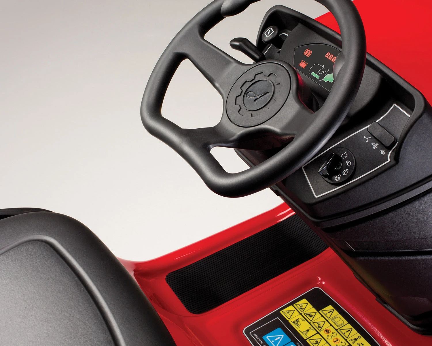 Steering is light and the operator controls are all within easy reach from the driving position. The comfortable seat is adjustable and an easy-to-read electronic dashboard keeps you informed of the critical functions of the mower.